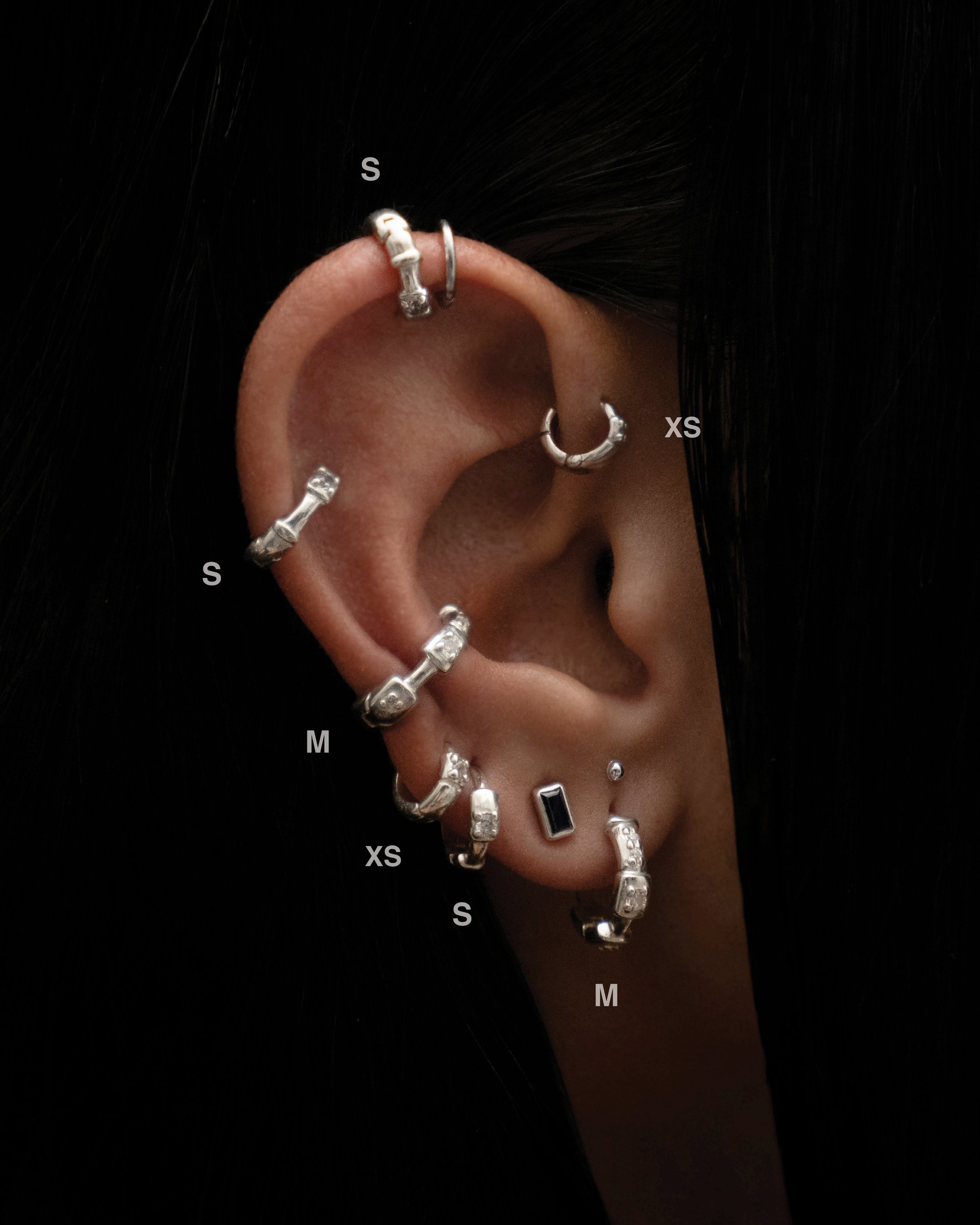 The TINI BATU _s piercing is part of is part of the Telinga collection, inspired my fascination for pierced ears. The collection is composed of various pieces that allow its wearer to get an extreme edgy pierced look.